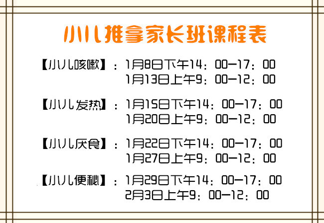 除了在馆内可以由专业推拿师为宝宝治疗,妈妈们现在也可以“自学成才”啦,由儿科名医段亚飞牵头、专业推拿师唐芳玲、唐婕婷等倾力加盟的全医堂双楠馆“小儿推拿班”已经开课啦~每周一、六与你不见不散哦。