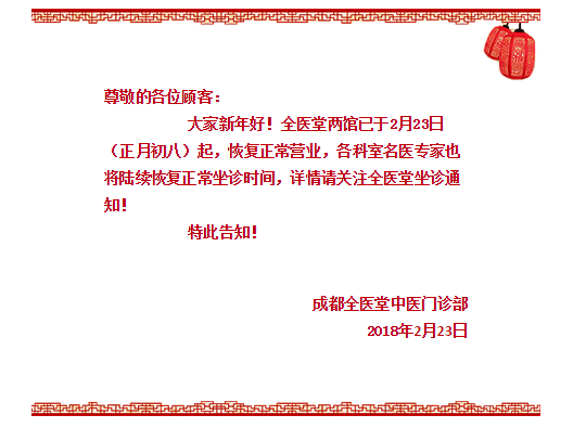 通知:2月23日(正月初八)起 全医堂两馆恢复正常营业